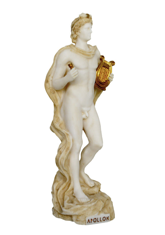 Apollo - Greek Roman God of Arts, Music, Poetry, Sun and Light, Prophecy - Aged Alabaster Statue