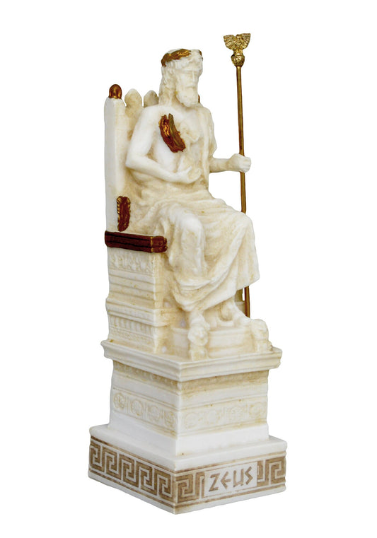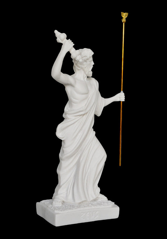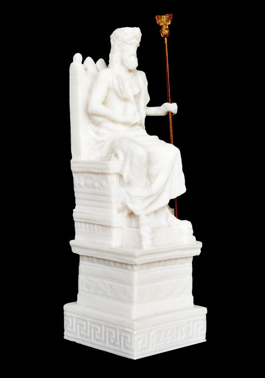 Zeus Jupiter - Greek Roman God of the Sky, Law and Order, Destiny and Fate - King of the Gods of Mount Olympus - Alabaster Statue