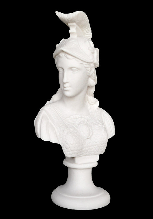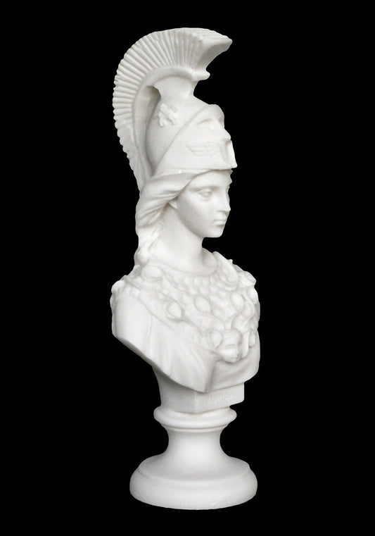 Athena Minerva Bust - Greek Roman Goddes of Wisdom, Strength, Strategy, Courage, Inspiration, Arts, Crafts, and Skill - Alabaster Sculpture