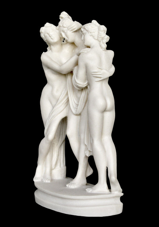 Three Graces Gratiae - Euphrosyne, Aglaia, and Thalia - Greek Roman Goddesses of Pleasure, Creativity - Alabaster Sculpture