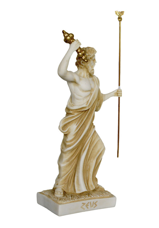 Zeus Jupiter - Greek Roman God of the Sky, Law and Order, Destiny and Fate - King of the Gods of Mount Olympus - Alabaster Aged Statue