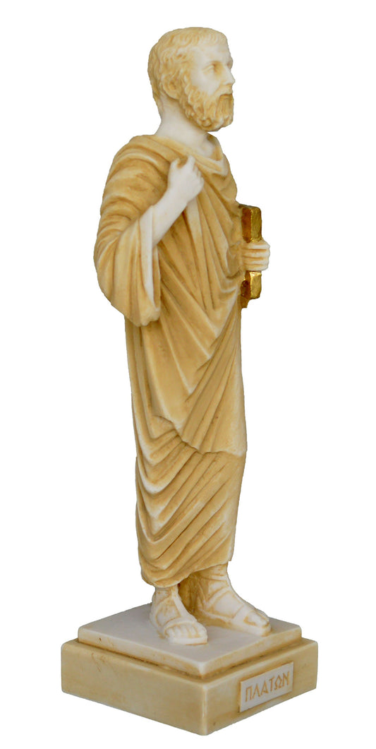 Plato - Ancient Greek Philosopher - 428-348 BC - Student of Socrates, Teacher of Aristotle - Founder of the Academy - Aged Alabaster Statue