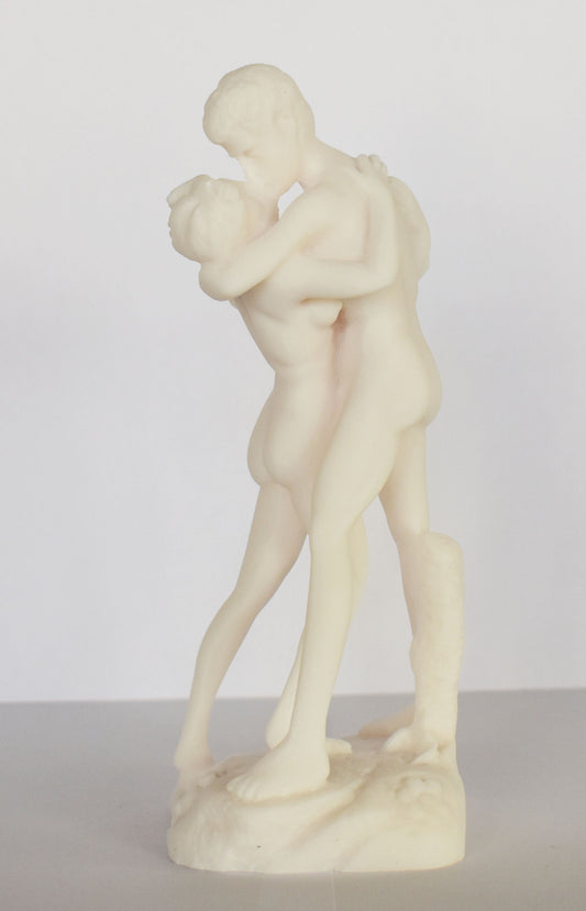 Nude Couple Sculpture - First Kiss - Hug, Love, Passion - Anniversary - Marriage - Man and Woman - Alabaster Statue