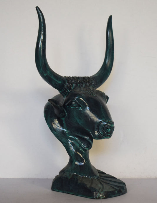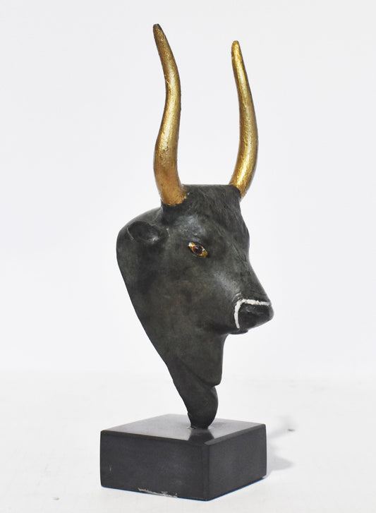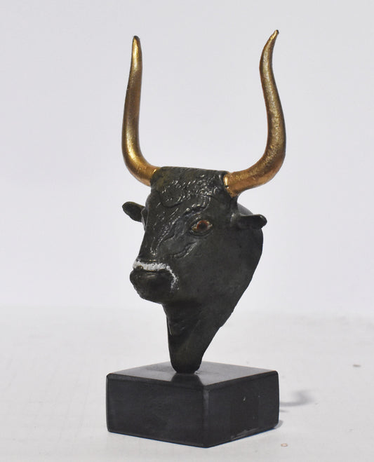 Minoan Bull Small Head - Sacred Animal - Art, Knossos Palace - marble base - pure bronze statue