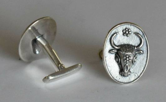 Minoan Bull Head - Symbol of Cosmic Energy, Forces of Life and Death, Pillars of the universe - Cufflinks- 925 Sterling Silver