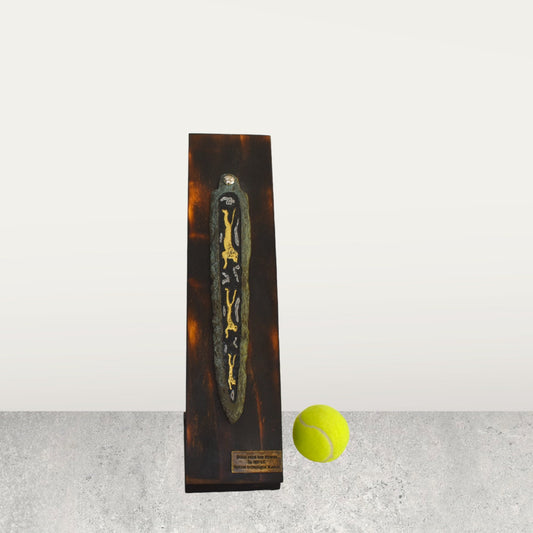 Mycenaean Sword, Xiphos with inlaid lions - Symbols of Strength, Courage, Justice - 1600 BC - Wooden Base - Replica - pure Bronze Sculpture