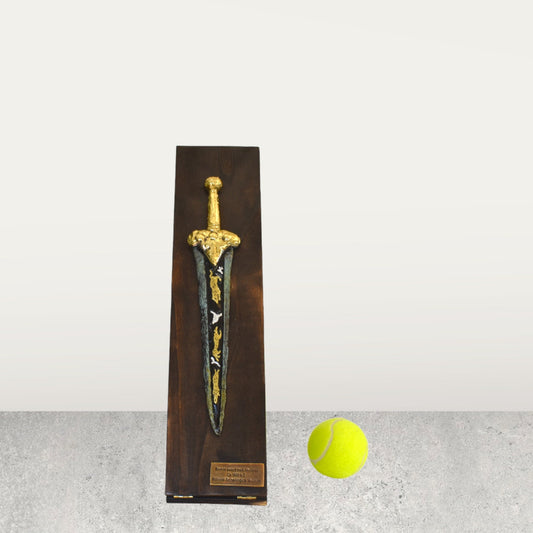 Mycenaean Sword, Xiphos - Duck Design - Symbol of Protection, Trust, Balance - 1600 BC - Wooden Base - Replica - pure Bronze Sculpture
