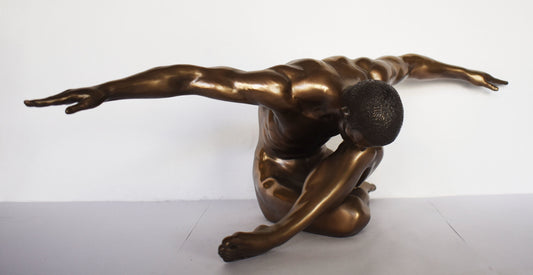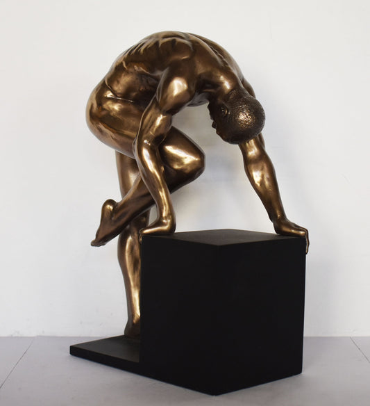 Naked Male Statue on base - At the touch of you, the arrows of delight shot through my body - Cold Cast Bronze Resin