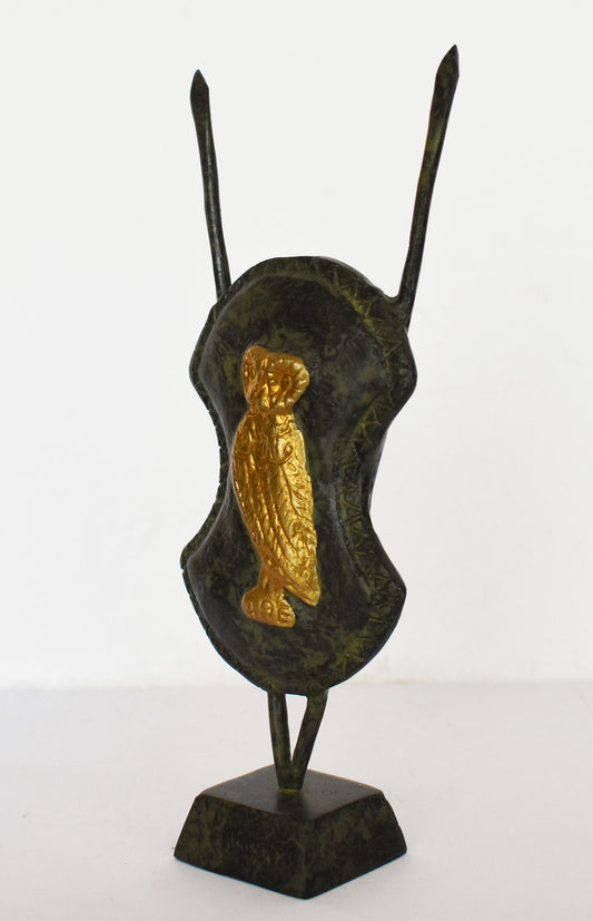 Ancient Greek Athenian Shield with Spears - Owl - Symbol of Knowledge, Wisdom, Perspicacity - Museum Replica - pure Bronze Sculpture