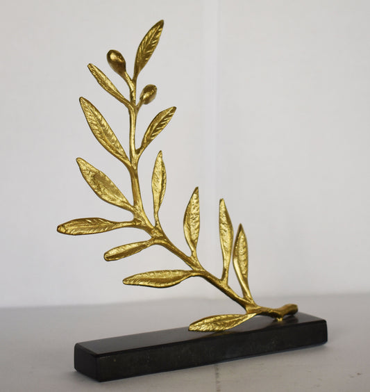 Olive Branch - Ancient Greek Symbol of Peace and Victory - a trophy for victorious Olympic athletes - Marble Base - pure bronze statue
