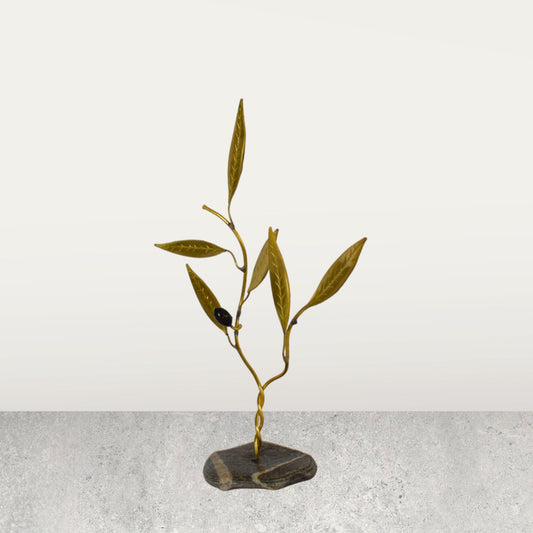 Olive branch - ancient Greek miniature reproduction with marble base - pure bronze artifact