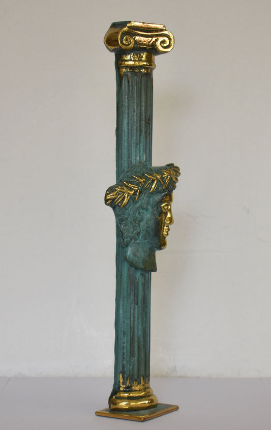 Olive Wreath Head of an Ancient Greek Olympic Winner on Ionic Column - pure Bronze Sculpture