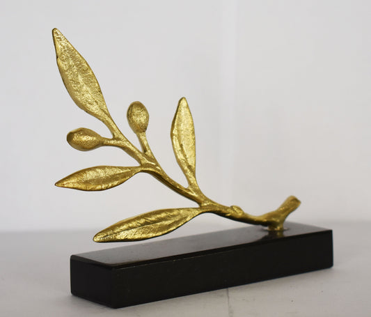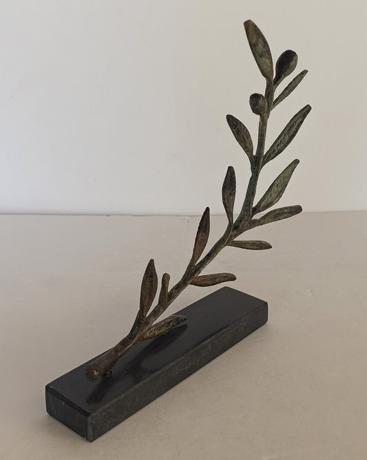 Olive Branch - Ancient Greek Symbol of Peace, Victory, sympathy, consolation, apology - Olympic Games Prize - Marble Base - pure bronze