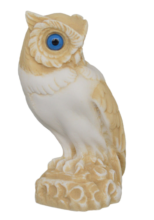Owl - Ancient Greek Symbol of Wealth, Prosperity, Wisdom, Good Luck and Fortune - Aged Alabaster Sculpture