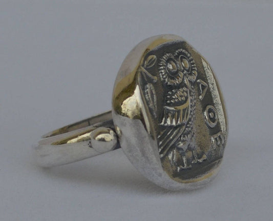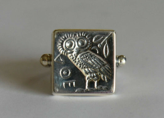 Owl of Wisdom and Intelligence - Symbol of Goddess Athena - Ancient Greece - Ring - Size Us 8 - 925 Sterling Silver