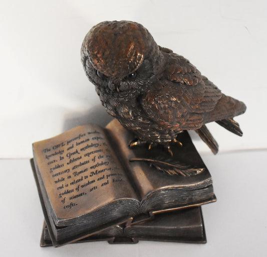 Owl Of Wisdom and Knowledge - Symbol of Greek Roman Goddess Athena Minerva - Ancient Greece - Cold Cast Bronze Resin