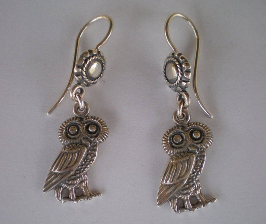 Owl Of Wisdom and Knowledge - Symbol of Goddess Athena Minerva - Ancient Greece - Earrings - 925 Sterling Silver