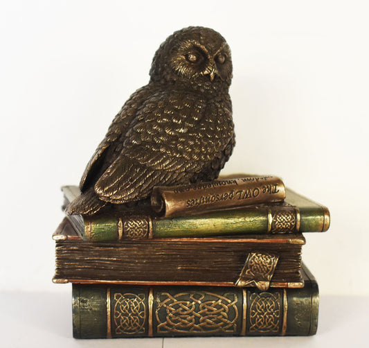 Owl Of Wisdom and Knowledge - Symbol of Goddess Athena Minerva - Ancient Greece - Jewelry Box - Cold Cast Bronze Resin