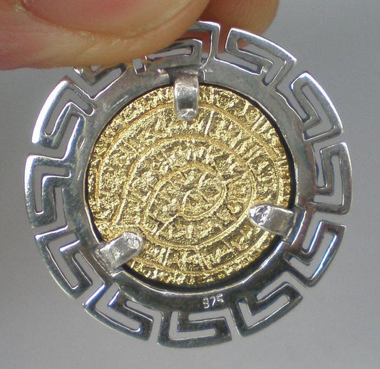 Phaistos Disk (Gold Plated) with Meander - Minoan Period, Crete, Ancient Greece - Pendant - 925 Sterling Silver