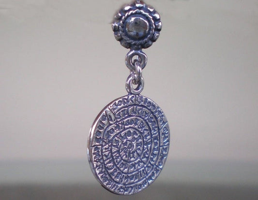 Phaistos Disc Coin - Minoan Period - Crete, Ancient Greece - Earrings - 925 Sterling Silver