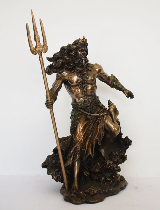 Poseidon Neptune - Greek Roman god of the sea, earthquakes, floods, drought and horses - Protector of Seafarers - Cold Cast Bronze Resin