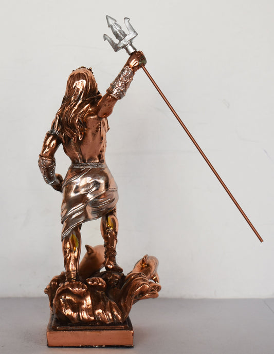 Poseidon Neptune - Greek Roman God of the Sea - ruled with absolute power over the ocean and its inhabitants - Copper Plated Alabaster