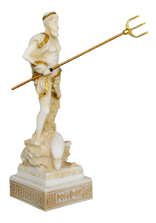 Poseidon Neptune - Greek Roman God of the Sea, Storms, Earthquakes and Horses - Protector of Seafarers - Alabaster Statue