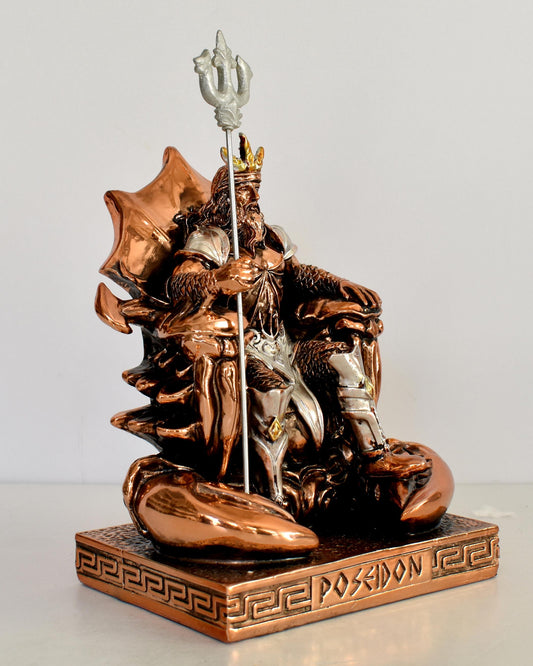 Poseidon Neptune - Greek Roman God of the Sea, Storms, Earthquakes and Horses - the ruler of the sea - Cold Cast Bronze Resin