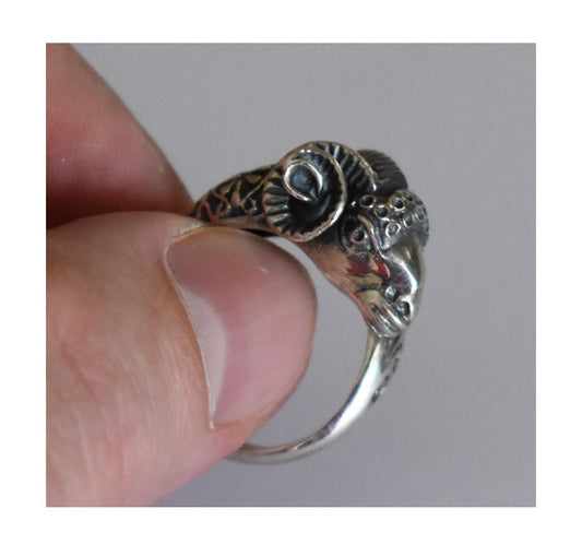 Ram Head - Symbol of Authority, Nobility, Virility, Fertility, Power and Leadership - Size Between Us 6 to 9- Ring - 925 Sterling Silver
