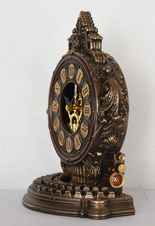 Retro Steampunk Clock - Modern Art, Decoration - Inspired by 19th-Century Industrial Steam-powered Machinery - Cold Cast Bronze Resin
