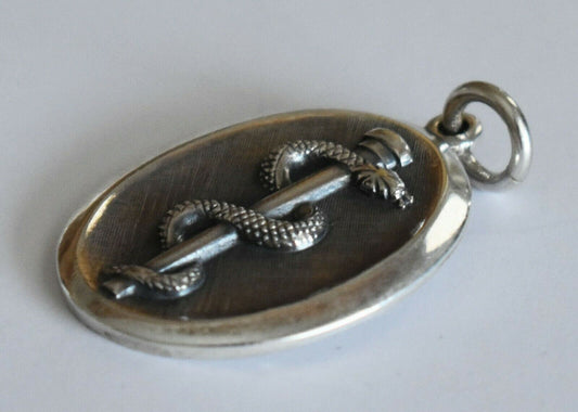 Rod - Sacred Symbol of Asclepius - Ancient Greek God of Medicine and Healing - DNA Helix - Pendant - 925 Sterling Silver