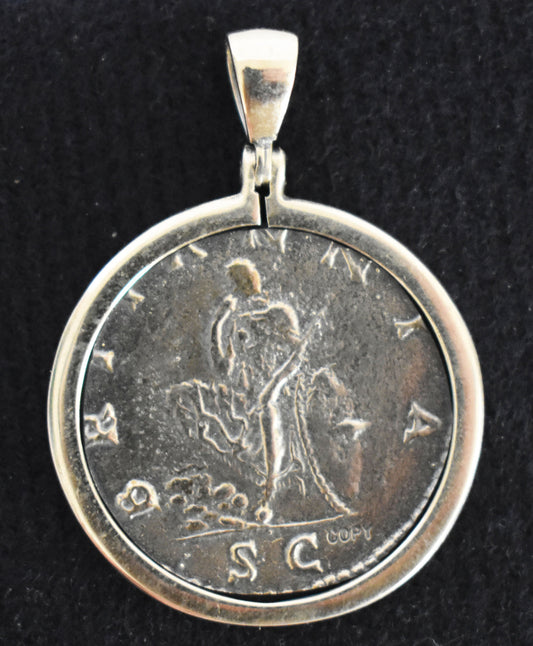 Roman Emperor Hadrian - An Ancient Love Story with Antinous over the Centuries - Britannia Sestertius - Coin Pendant - 925 Sterling Silver