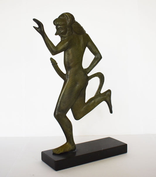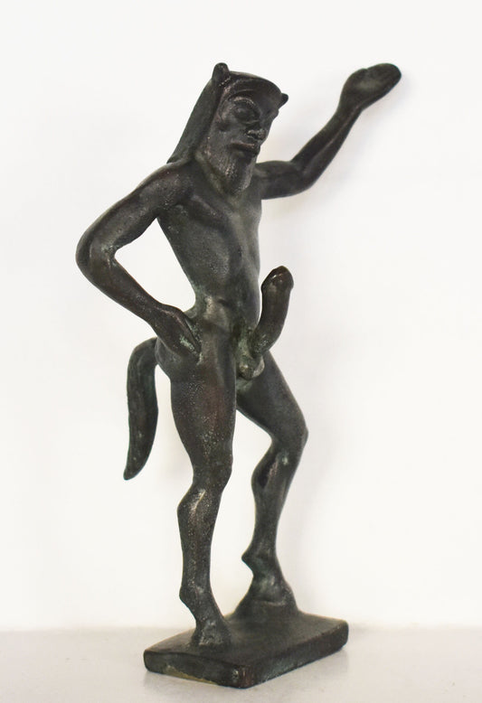 Satyr - Male Nature Spirit - Attendant of Pan and Dionysus - Goat-Human Hybrid- pure bronze statue
