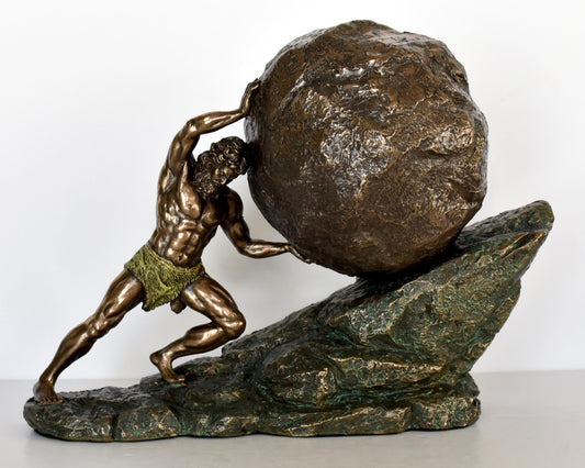 Sisyphus Sisyphos - Hades punished him to roll a boulder up a hill and to roll down every time it neared the top - Cold Cast Bronze Resin