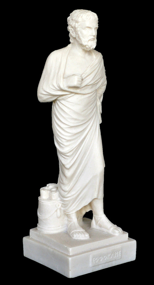 Sophocles - Ancient Greek Tragic Poet - 496-406 BC - Oedipus and Antigone - Alabaster Statue Sculpture