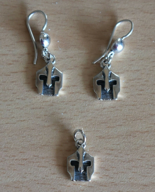 Spartan Helmet - King Leonidas - 300 Spartans - Battle of Thermopylae - 480 BC - Set of Mini Pendant and Earrings - 925 Sterling Silver