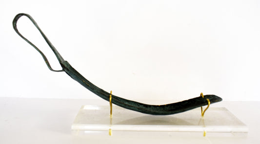 Strigil Stlengis - Ancient Athlete's Equipment - Dust, Sweat and Oil Remover - Plexiglass Base - pure bronze artifact