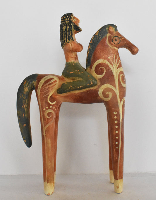 Terracotta horse and rider - Athens, Attica - 500 BC - Symbol of Courage, Integrity, Power - Museum Reproduction - Ceramic Artifact