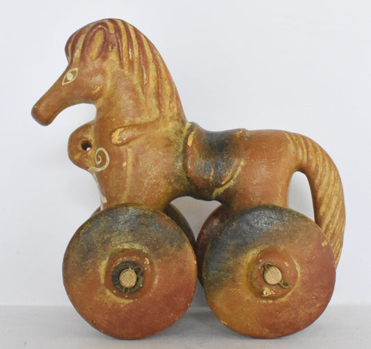 Terracotta wheeled horse - Children's Toy - Athens, Attica - 500 BC - Museum Reproduction - Ceramic Artifact