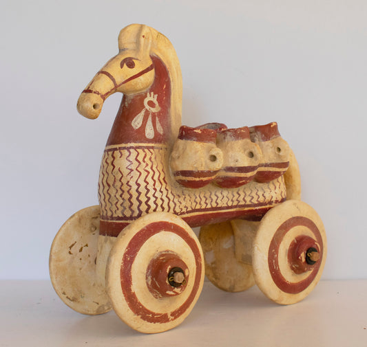 Terracotta wheeled Horse - Carrying Amphoras - Children's Toy - Athens, Greece - Geometric Period - Museum Reproduction - Ceramic Artifact