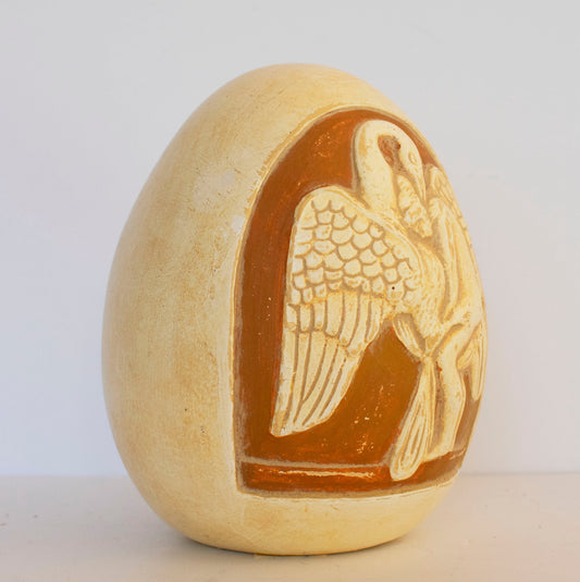 The Egg that Beautiful Helen was born - Leda was seduced by Zeus with the form of a Swan - Ceramic Artifact