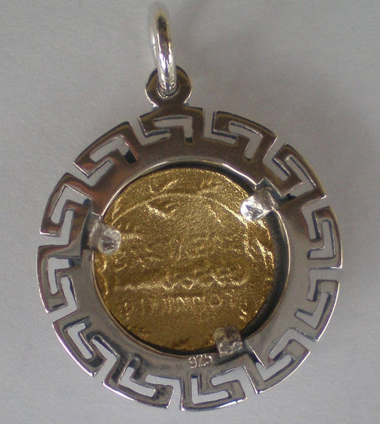 Vergina Sun - Alexander the Great - Macedonia - Rayed Solar Symbol - Meander Design - Gold Plated Pendant - 925 Sterling Silver
