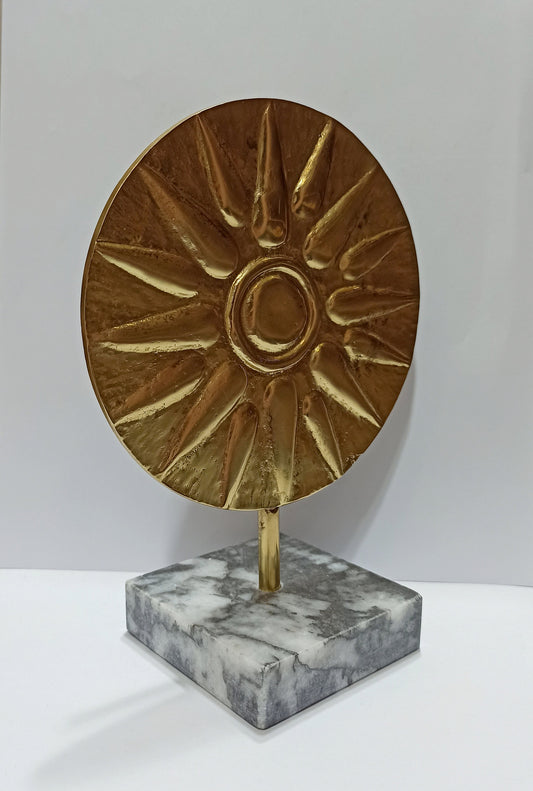 Vergina Sun - rayed solar Macedonian symbol - Alexander the Great - marble base - pure Bronze Sculpture