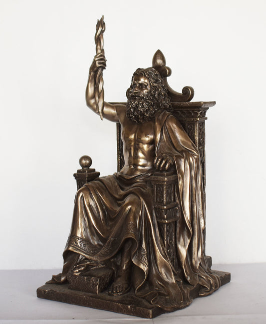 Zeus Jupiter on Throne - Greek Roman God of the Sky, Law and Order, Destiny and Fate - King of Mount Olympus - Cold Cast Bronze Resin