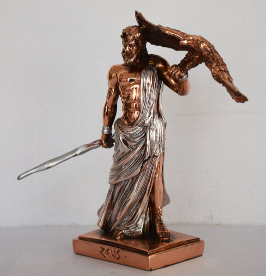 Zeus Jupiter - Greek Roman God of the Sky, Law and Order, Destiny and Fate - Chief Deity of the Pantheon - Copper Plated Alabaster