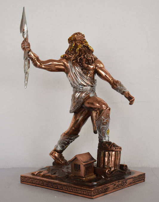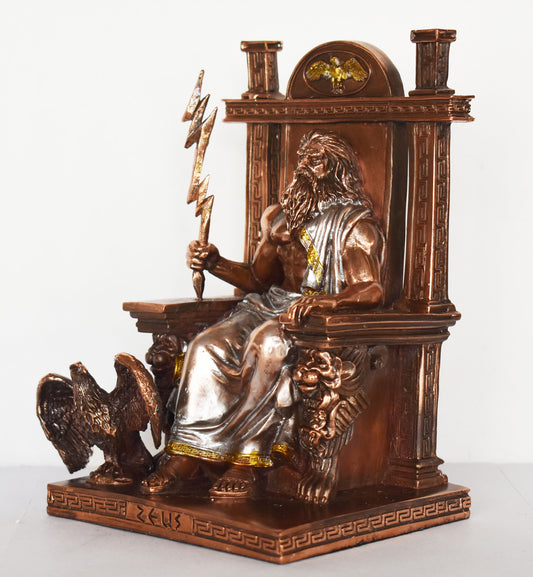 Zeus Jupiter - Olympia - Greek Roman God of the Sky, Law and Order, Destiny and Fate - King of Mount Olympus - Copper Plated Alabaster