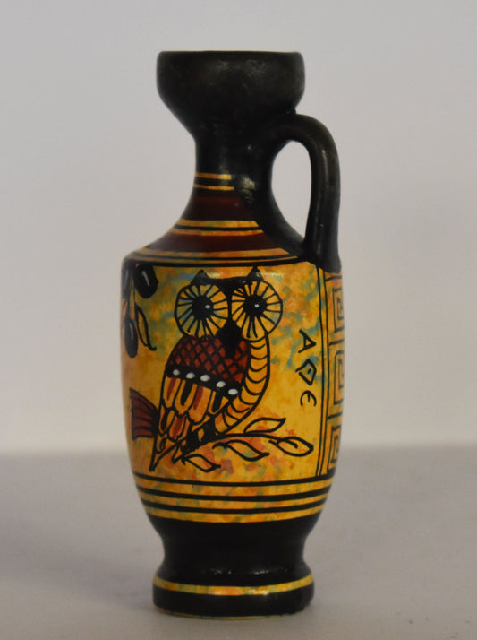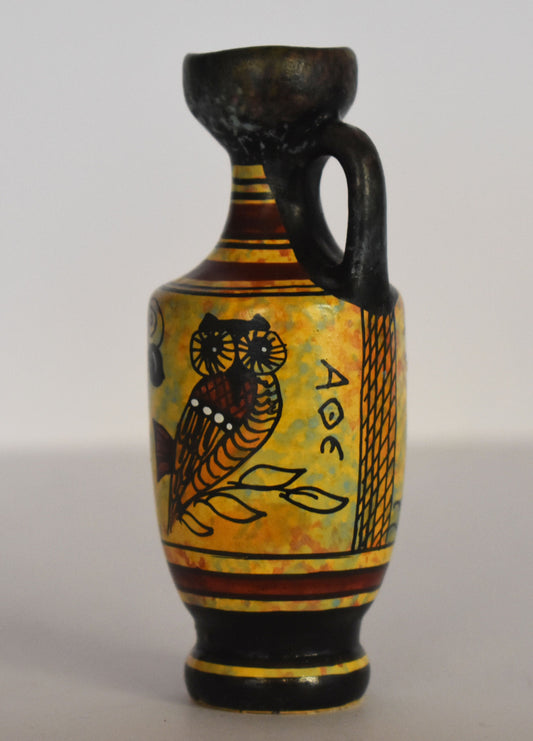 Ancient Greek lekythos - warriors and athenian owl - Miniature Ceramic piece - Geometric Period - Handmade in Greece