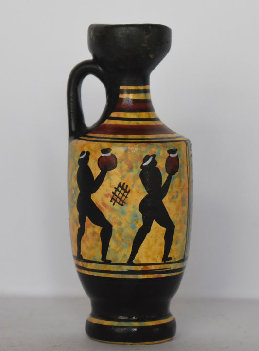 Ancient Greek lekythos - chariot and cupbearers - Miniature Ceramic piece - Geometric Period - Handmade in Greece