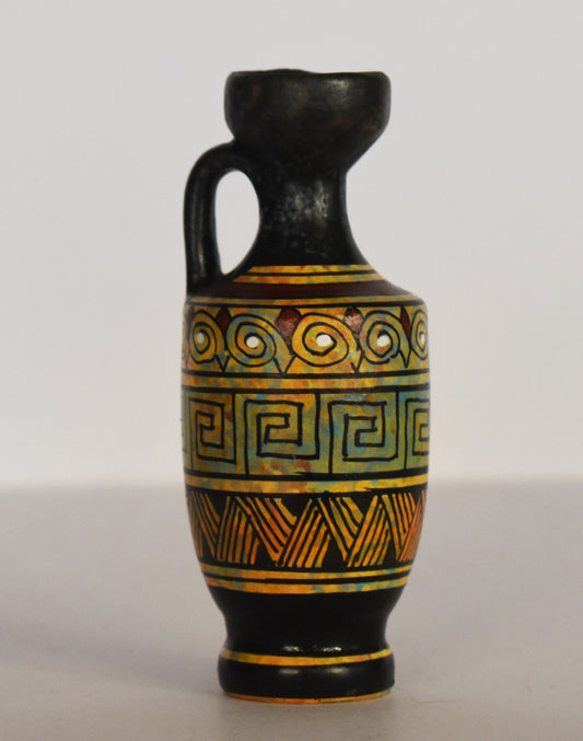 Ancient Greek lekythos - Greek key, meander - Miniature Ceramic piece - Geometric Period - Handmade in Greece