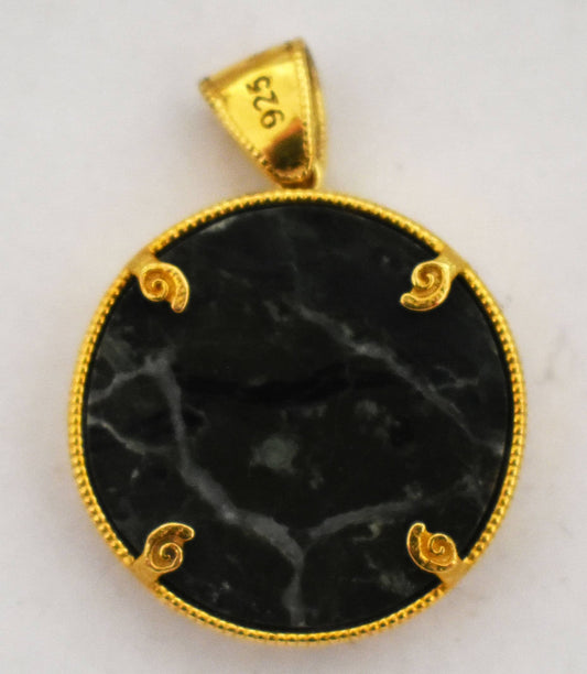 Ancient Greek Ionic Column Motif with Meander on Marble - Gold Plated Pendant - 925 Sterling Silver